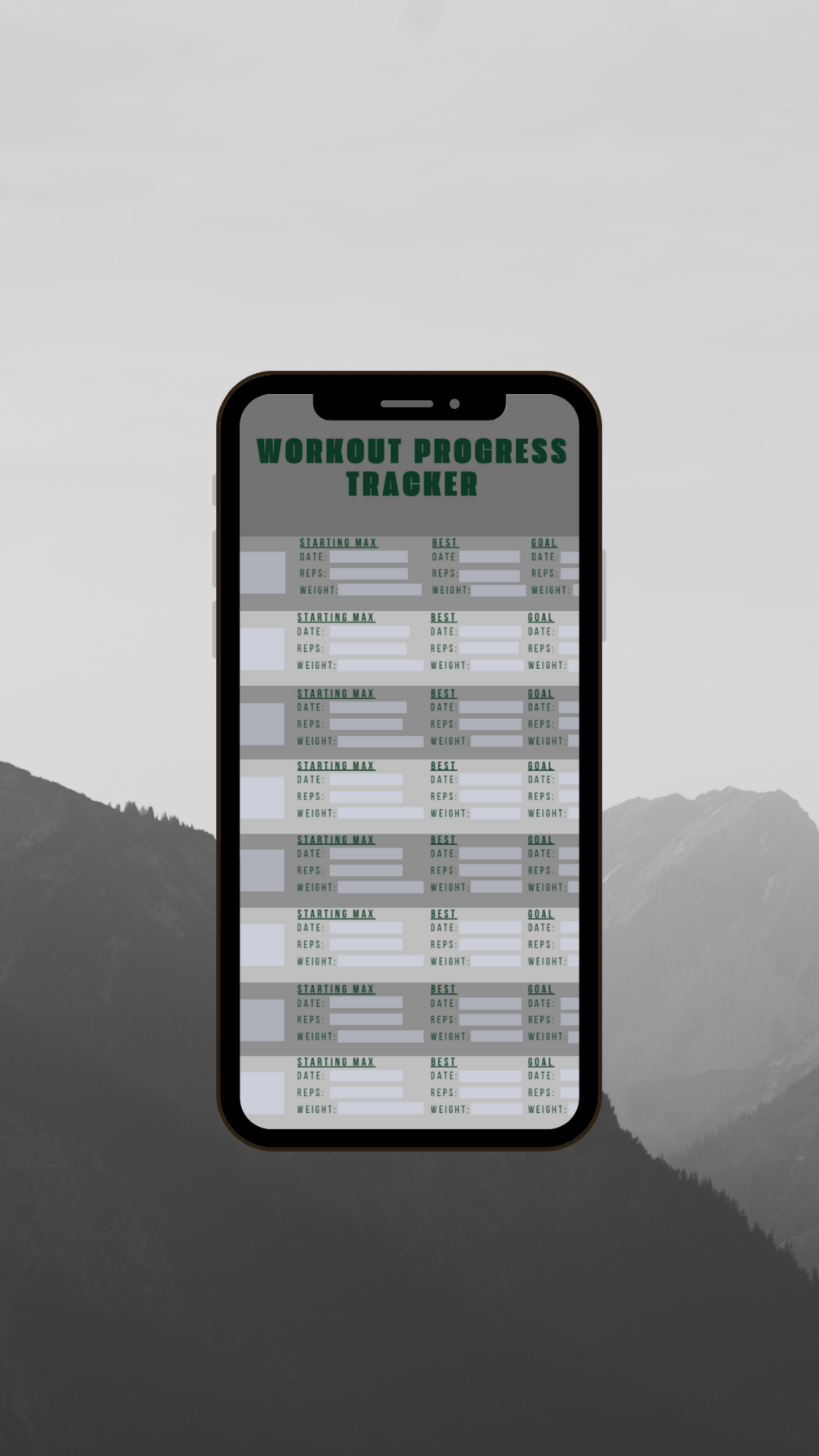 Take control of your fitness journey with the Workout Progress Tracker! This digital tool helps you track your starting point, set clear goals, and monitor your progress in reps and weight for each exercise. Whether you're lifting heavier, increasing endurance, or fine-tuning your routine, this tracker keeps you accountable and motivated. Perfect for beginners and experienced lifters alike, it's the ultimate companion for structured and measurable gains.